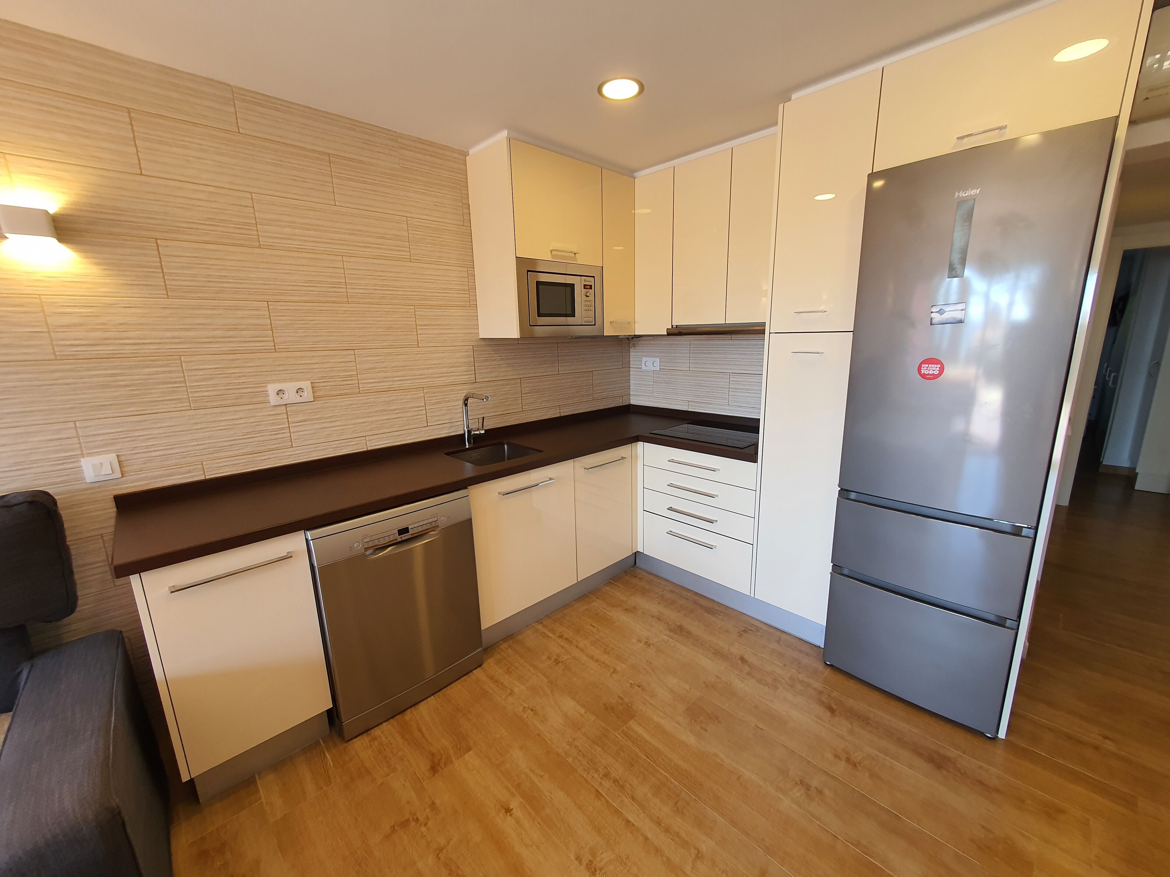 In the kitchen you have an induction hob, dishwasher, microwave, mixer, coffee maker, water heater and all the necessary kitchen utensils for a family, as well as a folding side table in case you feel like eating inside.