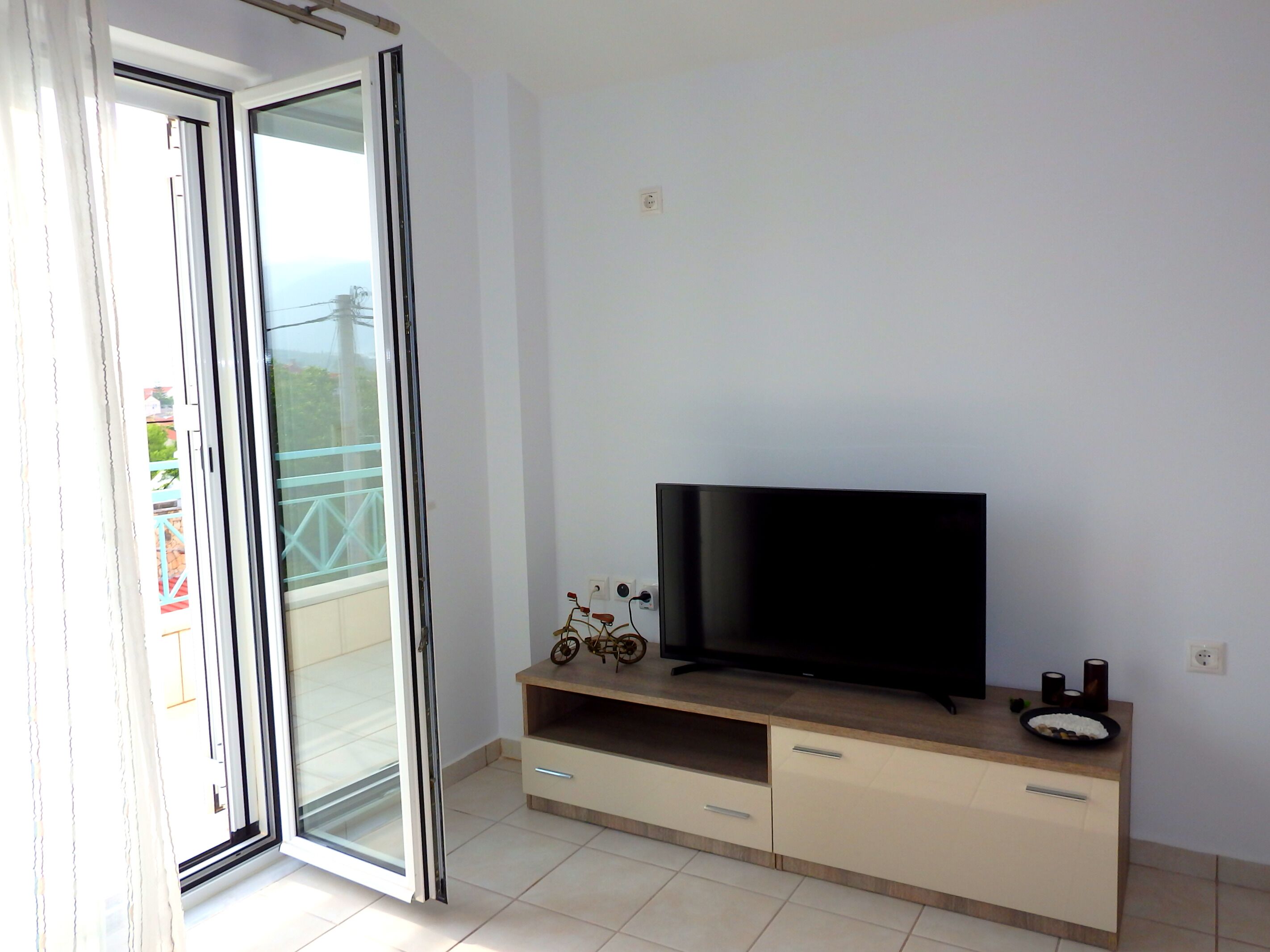 A stone-throw away from the heart of Sami town. Bars, tavernas, supermarkets, groceries and shops are all within 5 mins walk from this cute 2 bed apartment. Spacious living area including a large balcony ideal for eating and drinking outside with unobstructed sea view.