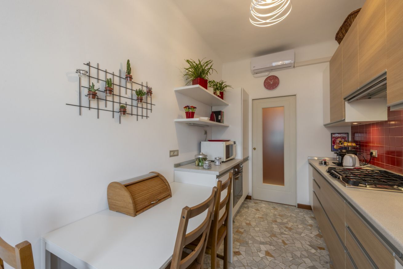 The two bathrooms, both with windows, are equipped with a shower and a bathtub to meet all your needs. The apartment is equipped with centralized heating, air conditioning with heat pump, a washing machine, and a flat-screen smart TV. Additionally, it offers high-speed internet, perfect for those working remotely.