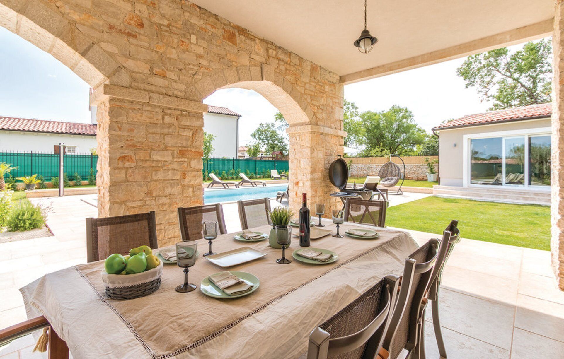 Oliva is a combination of modern and traditional Istrian architecture, providing an excellent and unique living experience. The interiors have been designed with great attention to detail and high quality furniture. During the hot summer months the outdoor swimming pool offers refreshment, while the wellness area with sauna and whirlpool will additionally pamper you. The wellness and leisure room has a glass wall that can be opened so you have the opportunity to enjoy outdoor recreation. Table tennis, table tennis, darts and table football will add to your holiday experience