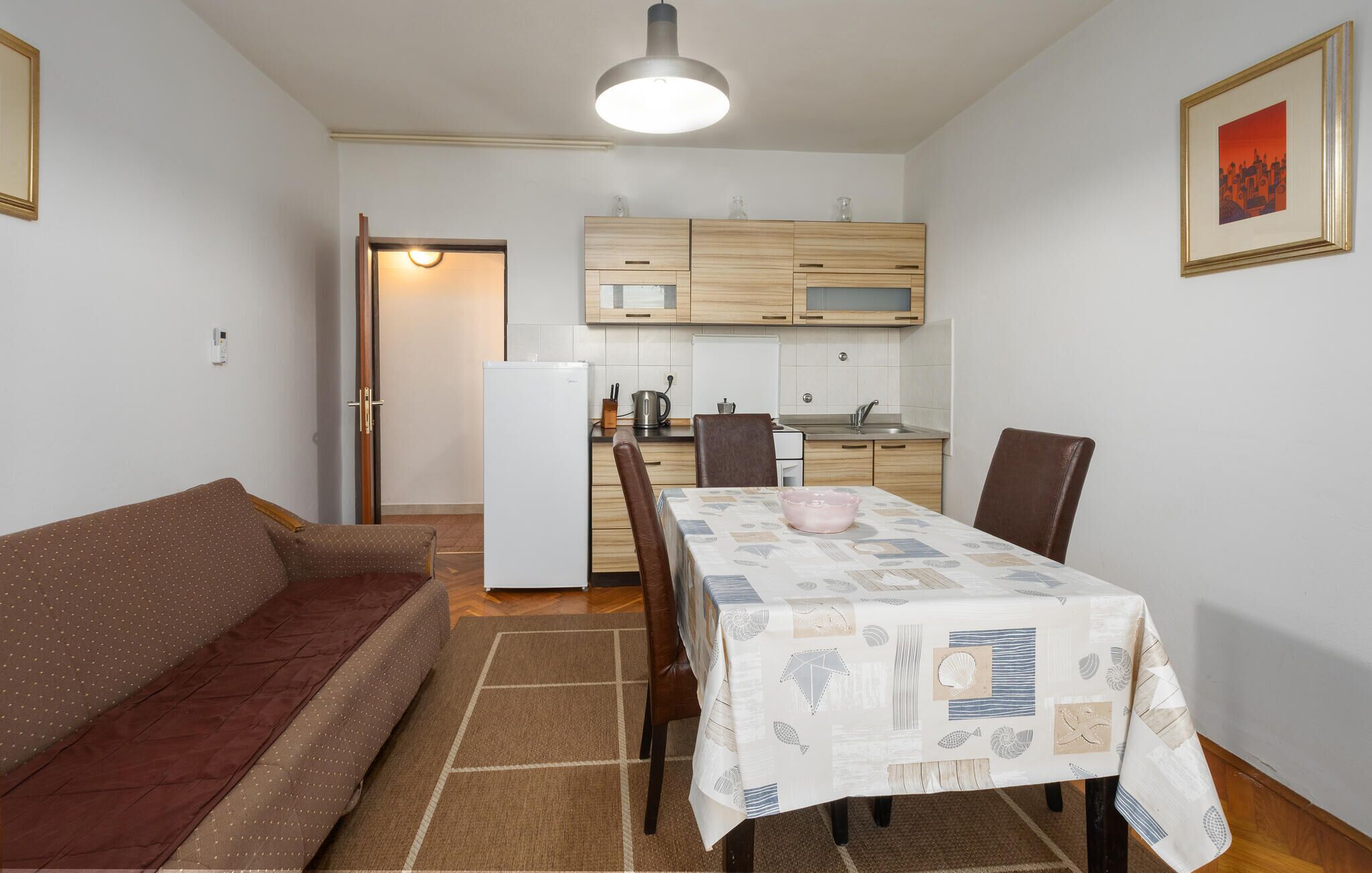 This practically furnished holiday apartment offers you cosy accommodation if you want to combine a beach holiday with exciting activities as a couple or small family. Prepare your favourite meals together, take a seat at the inviting dining table and use it for a relaxing games evening after an eventful day.