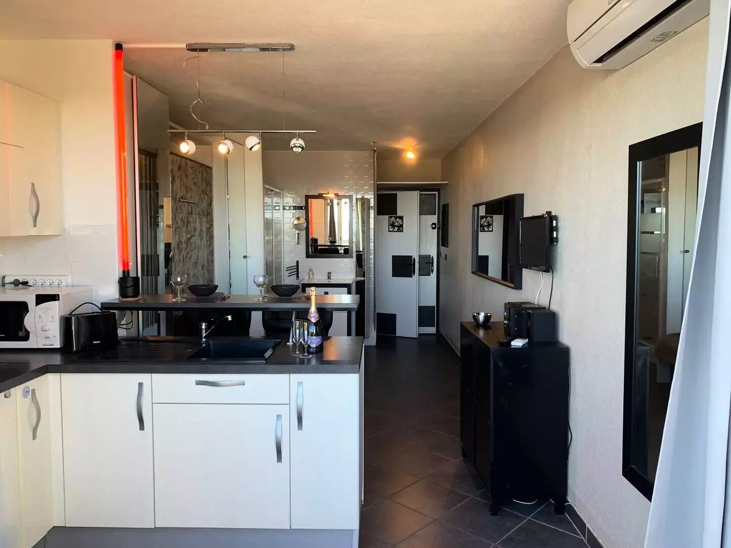 Details: Accessible by train : Marseillan-Plage (2.3 km) Near airport : Marseille Provence Airport #MRS (188.7 km) Naturist Surface (m²) : 19 View : Sea Floor : 3 Exposure : East Television Microwave oven Air conditioner Terrace Pets Allowed Number of pieces : 1 Number of bathroom : 1 Number of bedrooms Number of single beds Number of double bed : 1 Fridge Elevator Hair dryer Car park Cooked : 1 Heating : 1 Number of stars : 2 Dishes and cutlery : 1