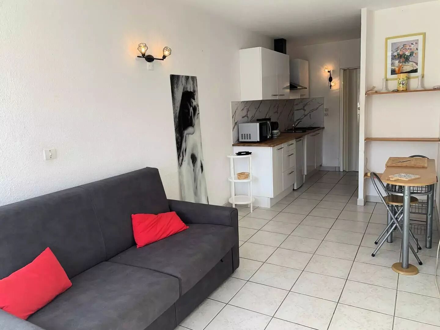 Details: Accessible by train : Marseillan-Plage (2.5 km) Near airport : Marseille Provence Airport #MRS (189.2 km) Naturist Surface (m²) : 20 View : Aisles Floor Exposure : South Television Microwave oven Air conditioner Terrace Number of pieces : 1 Number of bathroom : 1 Number of bedrooms Number of single beds Number of double bed : 1 Animals not allowed Elevator Fridge Car park Cooked : 1 Heating : 1 Vacuum cleaner kettle Number of stars Dishes and cutlery : 1